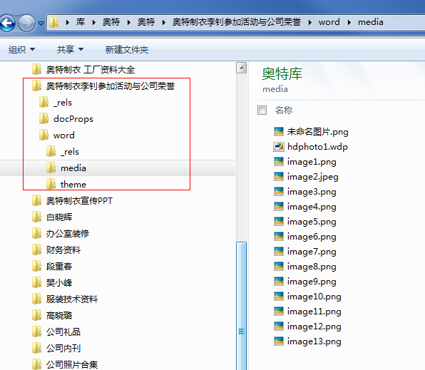 Word/media目錄下就存放著在word文檔中插入的所有圖片的原始文件。