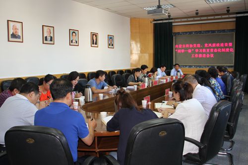 為深入貫徹落實(shí)自治區(qū)黨委巡視“回頭看”整改工作部署,進(jìn)一步加強(qiáng)自治區(qū)科協(xié)機(jī)關(guān)黨的建設(shè),持續(xù)推進(jìn)“兩學(xué)一做”學(xué)習(xí)教育常態(tài)化制度化的深入開(kāi)展,不斷加強(qiáng)推進(jìn)黨風(fēng)廉政建設(shè)工作和意識(shí)形態(tài)工作,9月19日,內(nèi)蒙古科協(xié)召開(kāi)黨建、黨風(fēng)廉政建設(shè)暨“兩學(xué)一做”學(xué)習(xí)教育常態(tài)化制度化工作推進(jìn)會(huì)議。內(nèi)蒙古科協(xié)黨組成員、副主席、機(jī)關(guān)黨委書(shū)記烏日吉圖出席會(huì)議并講話,副巡視員周純烈出席會(huì)議,機(jī)關(guān)黨委委員、紀(jì)委委員,自治區(qū)科協(xié)所屬各黨總支、黨支部書(shū)記、委員30余人參加會(huì)議。