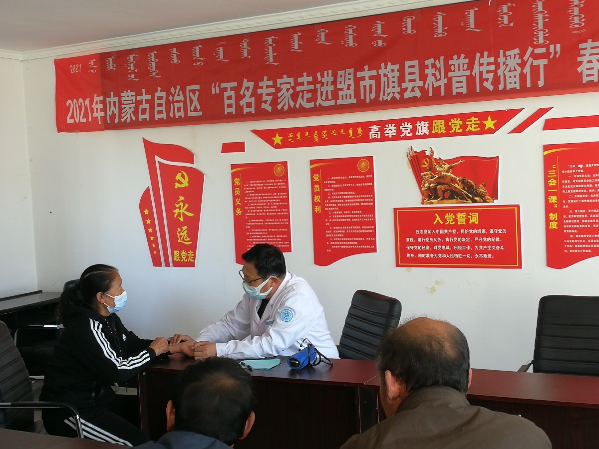 內(nèi)蒙古自治區(qū)國際蒙醫(yī)院的知名專家阿拉登達(dá)來深入到到阿其瑪社區(qū)為40余名居民開展義診服務(wù)活動,為前來就診的社區(qū)居民問診把脈,為居民講解日常保健、科學(xué)就醫(yī)知識,引導(dǎo)他們樹立科學(xué)的生活理念,養(yǎng)成健康的生活習(xí)慣。