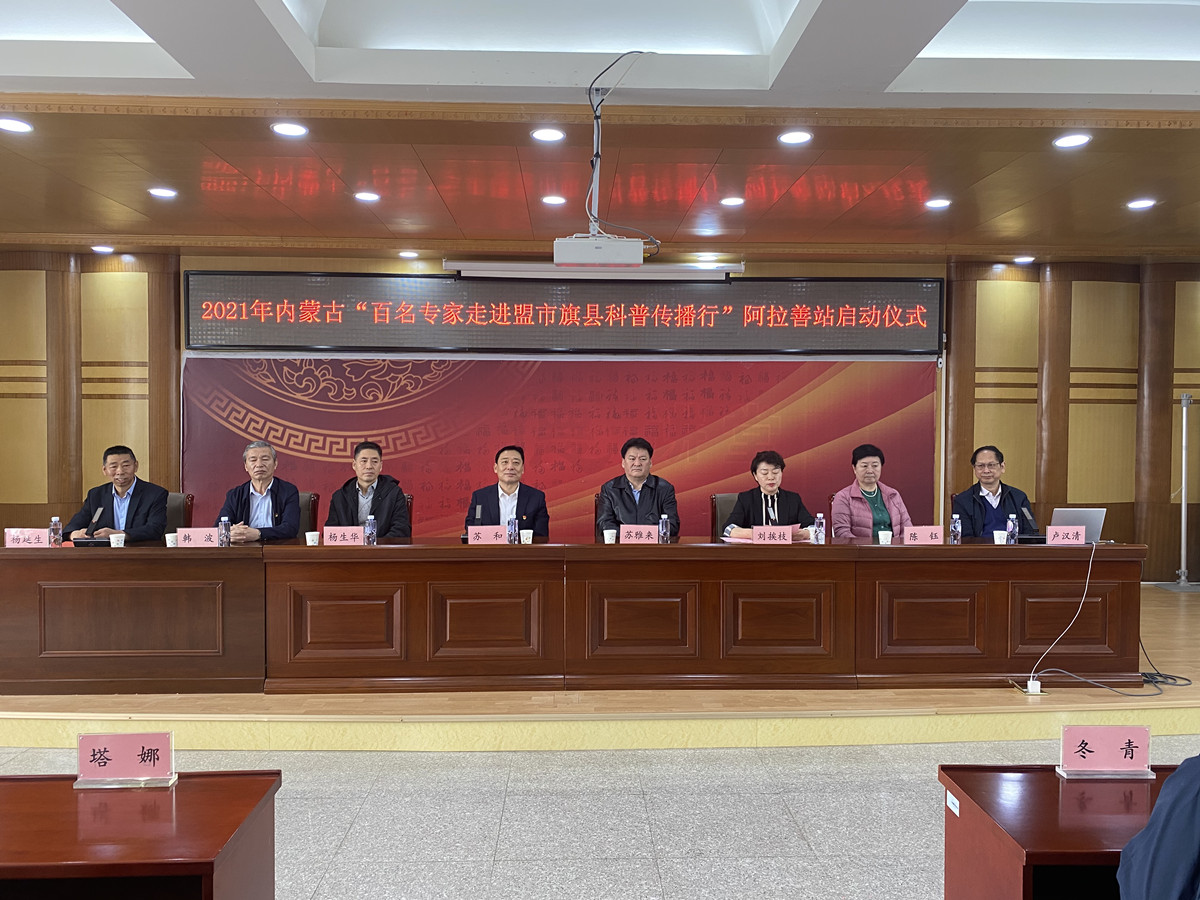 3月29日,2021年內(nèi)蒙古自治區(qū)“百名專家走進(jìn)盟市旗縣科普傳播行”春季活動(dòng)阿拉善站啟動(dòng)儀式在阿拉善盟氣象局舉行。內(nèi)蒙古自治區(qū)科協(xié)黨組成員、副主席蘇雅來,阿拉善盟委副書記、政法委書記蘇和出席啟動(dòng)儀式,阿拉善盟氣象局、阿拉善盟科協(xié)、阿拉善盟阿拉善左旗科協(xié)80多名工作人員參加啟動(dòng)儀式。