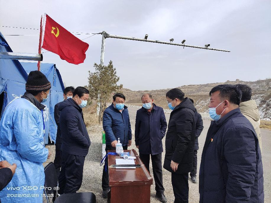 清水河縣北堡鄉(xiāng)碓臼坪村支書(shū)劉榮(右一)在核酸檢測(cè)點(diǎn)