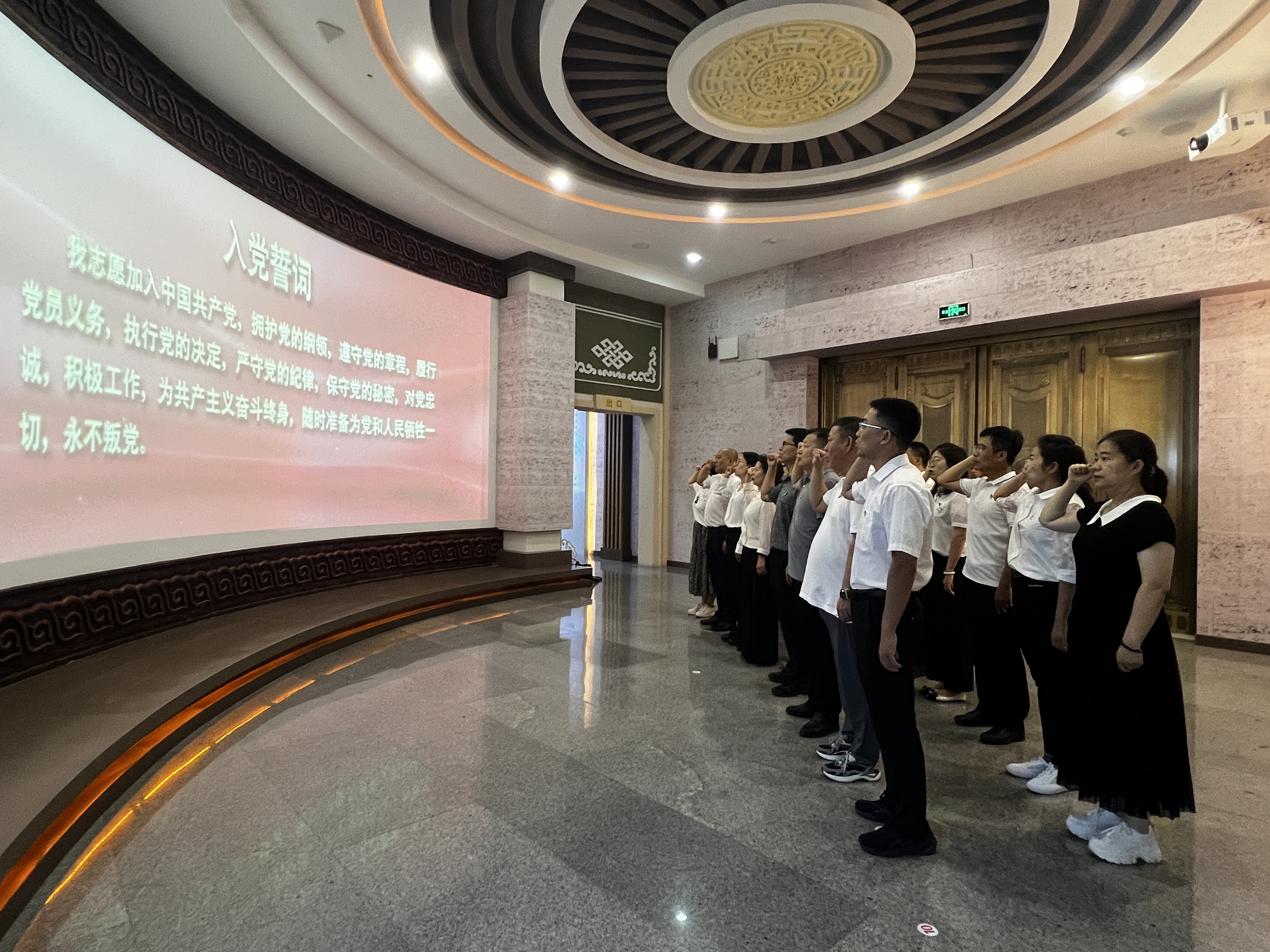 參觀結(jié)束后,全體黨員面對鮮紅的黨旗莊嚴(yán)肅立,重溫入黨誓詞。(趙樂文 攝影:王曉陽)