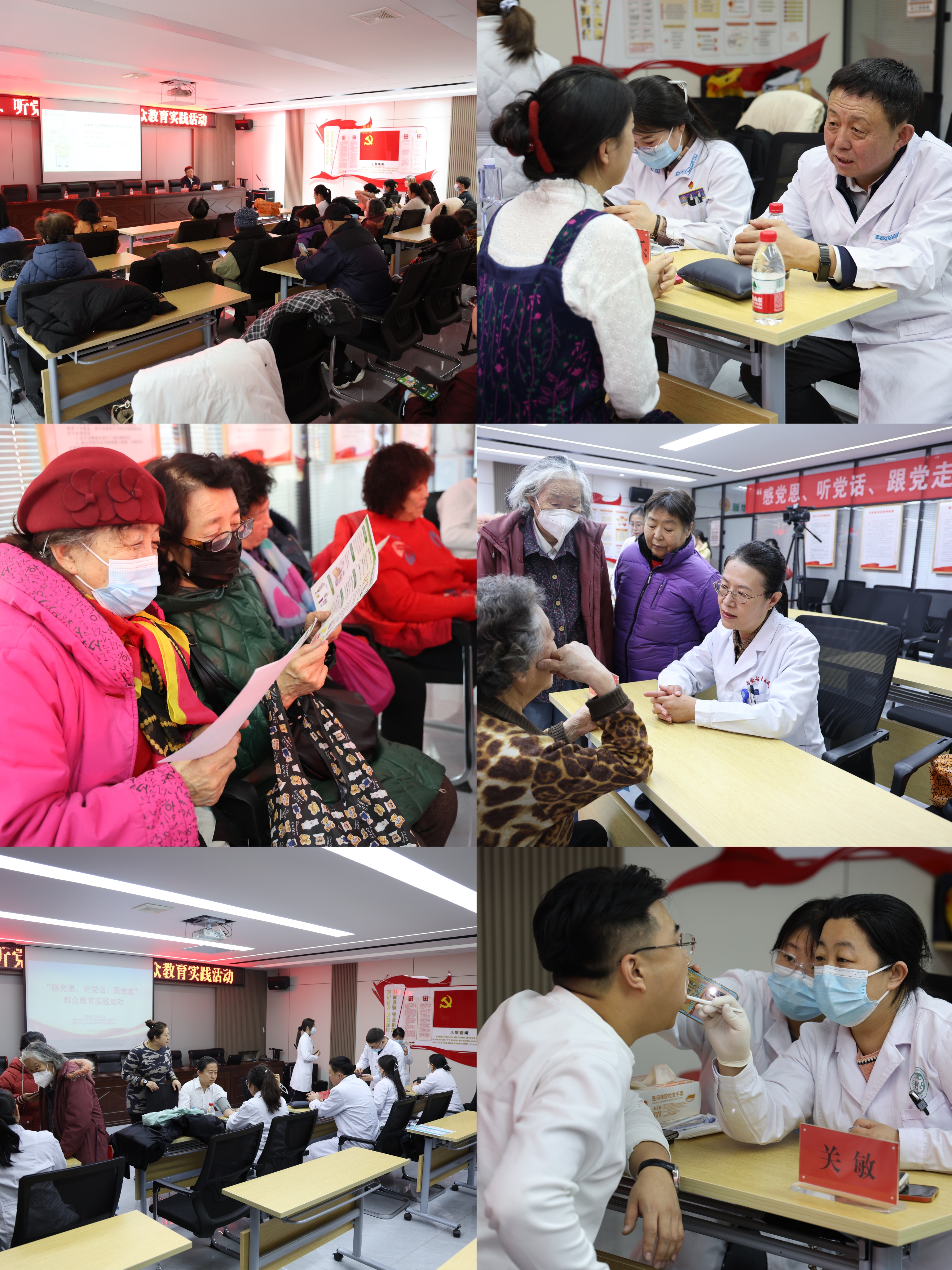 內(nèi)蒙古國際蒙醫(yī)醫(yī)院腦病中心主任特木其樂、內(nèi)蒙古自治區(qū)中醫(yī)醫(yī)院眼科副主任楊曉靜、內(nèi)蒙古人民醫(yī)院口腔內(nèi)科副主任關敏以健康知識講座開場,并為居民義診,耐心詢問居民的身體狀況和日常生活情況,講解疾病相關知識。隨后,志愿者還帶領大家學習保健操,游臂、轉腰、推拳……大家認真學習著每一個動作、仔細完成著每一個環(huán)節(jié)。