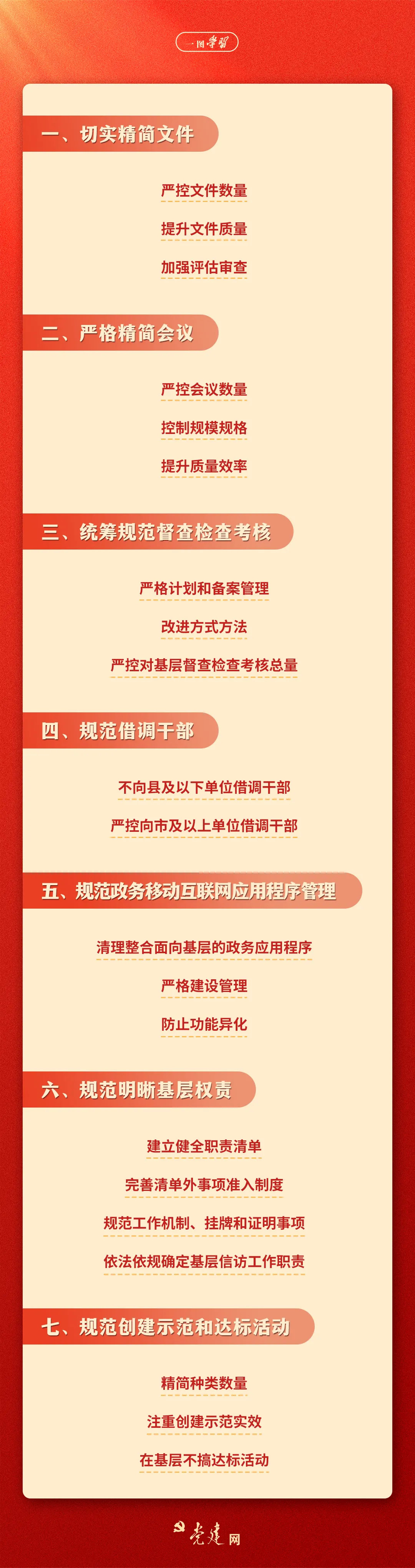 中共中央辦公廳、國務院辦公廳印發(fā)《整治形式主義為基層減負若干規(guī)定》(以下簡稱《若干規(guī)定》),并發(fā)出通知,要求各地區(qū)各部門認真遵照執(zhí)行,統(tǒng)籌為基層減負和賦能,切實把基層從形式主義、官僚主義束縛中解脫出來,引導廣大黨員、干部積極擔當作為,有更多精力抓落實?!度舾梢?guī)定》都有哪些明確要求?快來一圖學習!