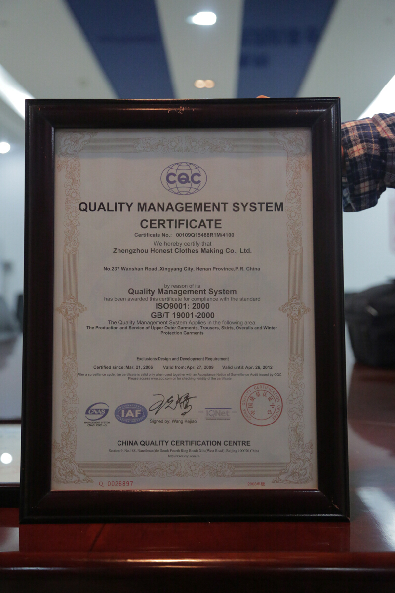 奧特制衣流水線年生產(chǎn)男褲300萬(wàn)條,產(chǎn)品完全符合AQL2.5驗(yàn)貨標(biāo)準(zhǔn)。以品質(zhì)上的保證,做到了誠(chéng)信的第一步。