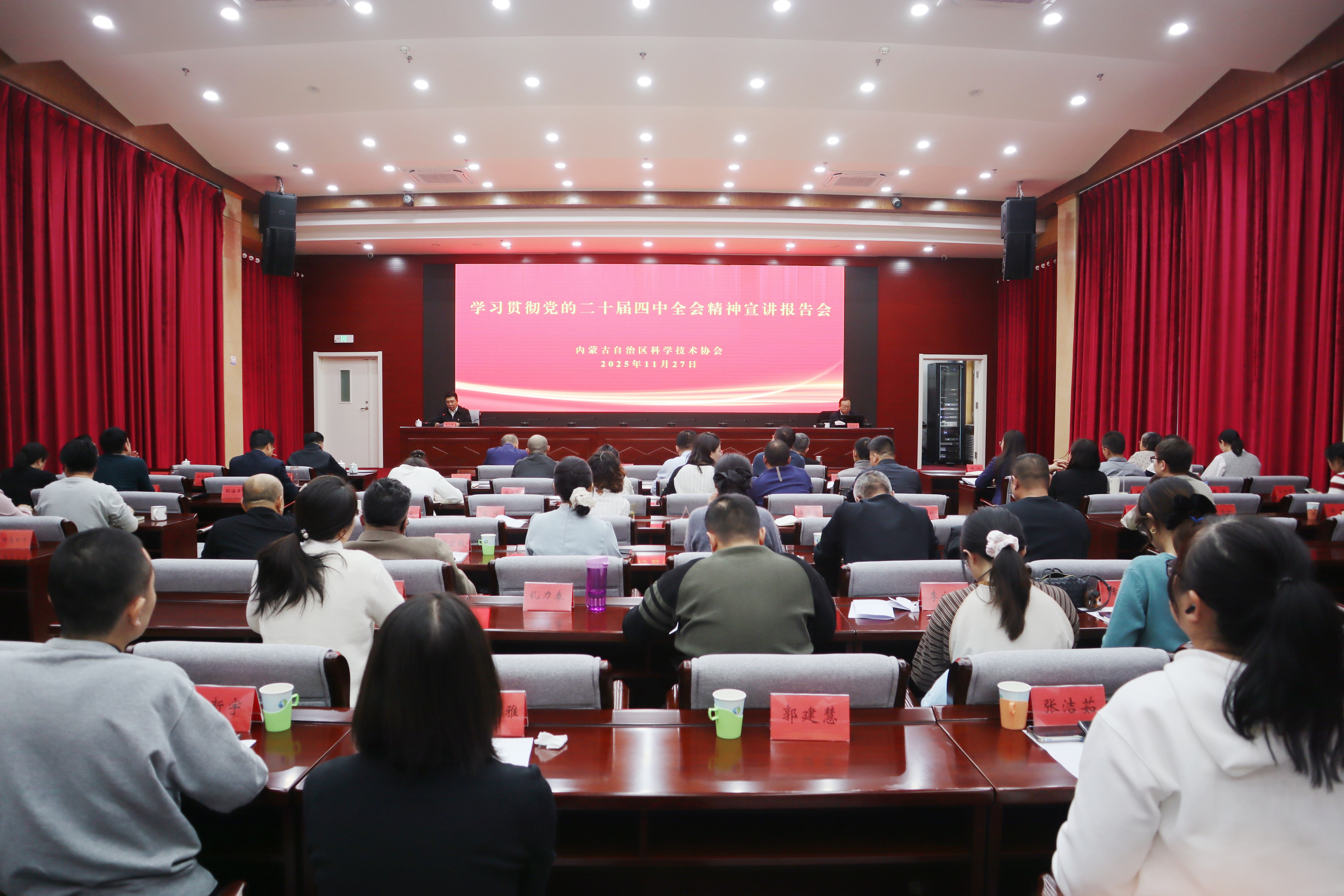 11月27日,自治區(qū)科協(xié)召開學習貫徹黨的二十屆四中全會精神宣講報告會。特邀自治區(qū)直屬機關宣講團成員,內(nèi)蒙古科學技術研究院黨組成員、副院長宋志文作專題輔導。自治區(qū)科協(xié)黨組書記李中增主持,科協(xié)機關、事業(yè)單位全體黨員干部參加。