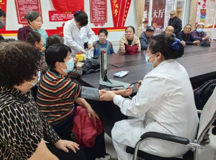 義診環(huán)節(jié),工作人員為居民免費(fèi)測量血壓、血糖,細(xì)致詢問病史及用藥情況,并結(jié)合檢查結(jié)果提供個(gè)性化診療建議。對于血壓、血糖指標(biāo)異常的居民,醫(yī)務(wù)人員耐心指導(dǎo)其調(diào)整生活方式,強(qiáng)調(diào)“控鹽、減重、戒煙限酒”的重要性,并提醒定期復(fù)查;針對行動不便、需長期服用多種藥物的老年居民,還貼心發(fā)放《用藥清單整理模板》《服藥時(shí)間指南》《健康生活手冊》等科普資料,幫助其規(guī)范用藥、科學(xué)管理健康。一句句叮囑、一份份資料,讓居民們切實(shí)感受到關(guān)懷與溫暖。